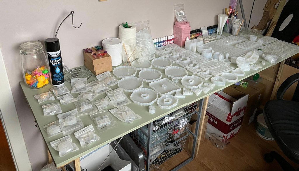 So I did it I bit the bullet I ordered some silicone moulds (far more than I meant to due to not reading the small print), some resin after researching the best ones, dried flowers, alcohol inks and some fillers and off I went. I converted the spare room into a design studio so I had a space to create. It took about a month for everything to arrive. I got started as soon as it arrived. I learned a LOT! It really is one of these things you can only learn through doing and I feel as though every day I learn a little bit more. This is what spurred me on to start the blog. I thought I should really write about this, but I will wait until I am really good. Then I thought but how am I going to remember every part of this journey? How I felt at each stage? How it’s helping or hindering my anxiety and what I’m doing to combat that. So here we are I am currently at the stage where I have some stock that is worthy of selling (that took a while) and I am learning about algorithms for Instagram, Etsy, Facebook etc to help build a following. Nothing is up for sale yet. I will post when it is and tell you about individual products etc. But I hope that this will help inspire you to start your journey too.